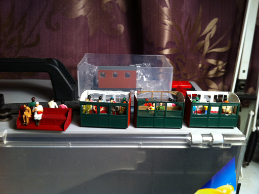 A number of carriages have also been painted, including the bugs which are now ivory inside with red cushions and people are about to be added inside too.